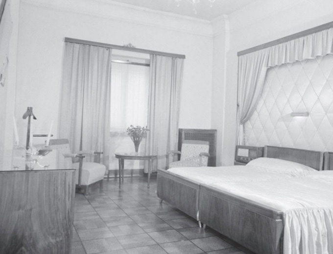 Habitación del Hotel do Império, en Lisboa, donde se aplicó corcho para el recubrimiento de las habitaciones. Fuente: Open Edition Journalist (2021). Referencia: https://journals.openedition.org/arquivomunicipal/532#tocto1n2