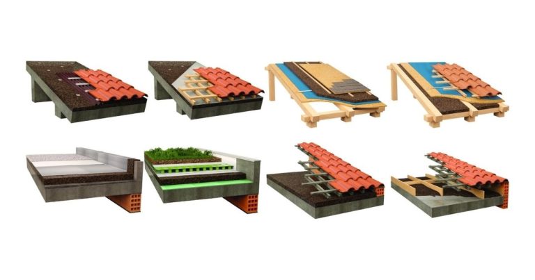 Cuando el material se encuentra en la cubierta lo hace en forma de placas, paneles o simplemente granulado entre vigas y funciona como aislante térmico y acústico. El funcionamiento es similar al del muro, solamente que el panel se coloca verticalmente. Al funcionar con capas, puede ser mezclado con otro tipo de materiales sin problema alguno, quedando oculto a la vista y aportando confort al interior de la habitación.
