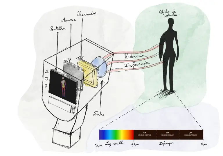 Fig. – Principio de funcionamiento de una cámara térmica (fuente: Maxime Hossenbaccus)