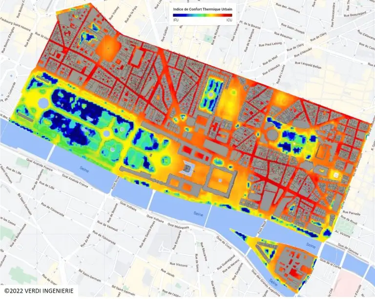Fig. – Termografía del 1° arrondissement de Paris (fuente: Verdi ingénierie/APUR)