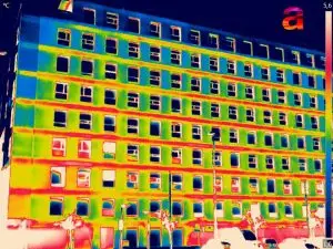 Fig. – Termograma de la fachada de un edificio (fuente: Arrebol estudio)