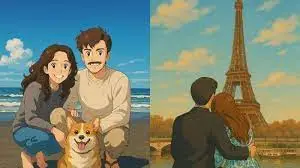 Son ilustraciones o creaciones visuales inspiradas en la estética característica de Studio Ghibli, el famoso estudio de animación japonés fundado por Hayao Miyazaki e Isao Takahata. Referencia: https://fahum.umsu.ac.id/blog/trend-buat-gambar-ghibli-di-chatgpt-berikut-caranya/