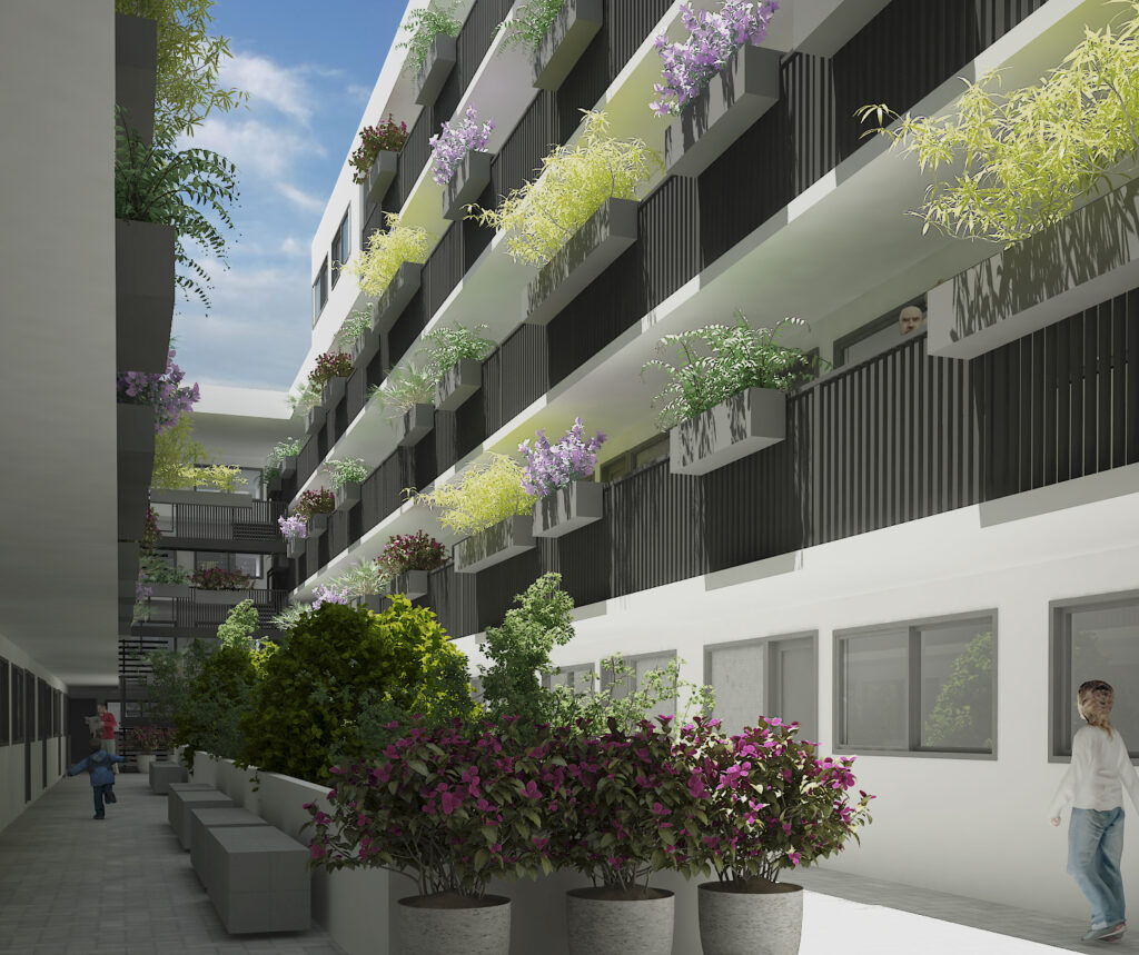 Edificio de vivienda multifamiliar donde se hizo un análisis social además de un estudio de eficiencia energética y ahorro de agua para incrementar el confort de los habitantes.